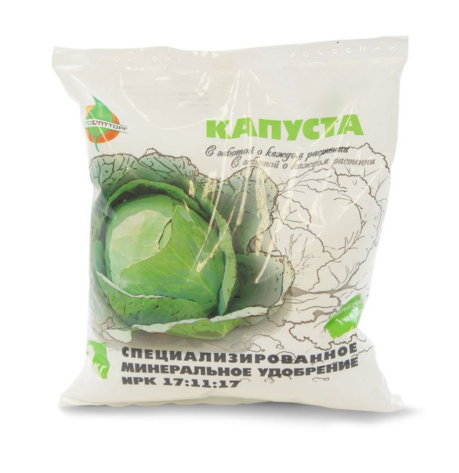 Удобрение "Капуста" предназначено для основного внесения и подкормки белокачанной, краснокачанной, цветной, брюссельской капусты и т.д.